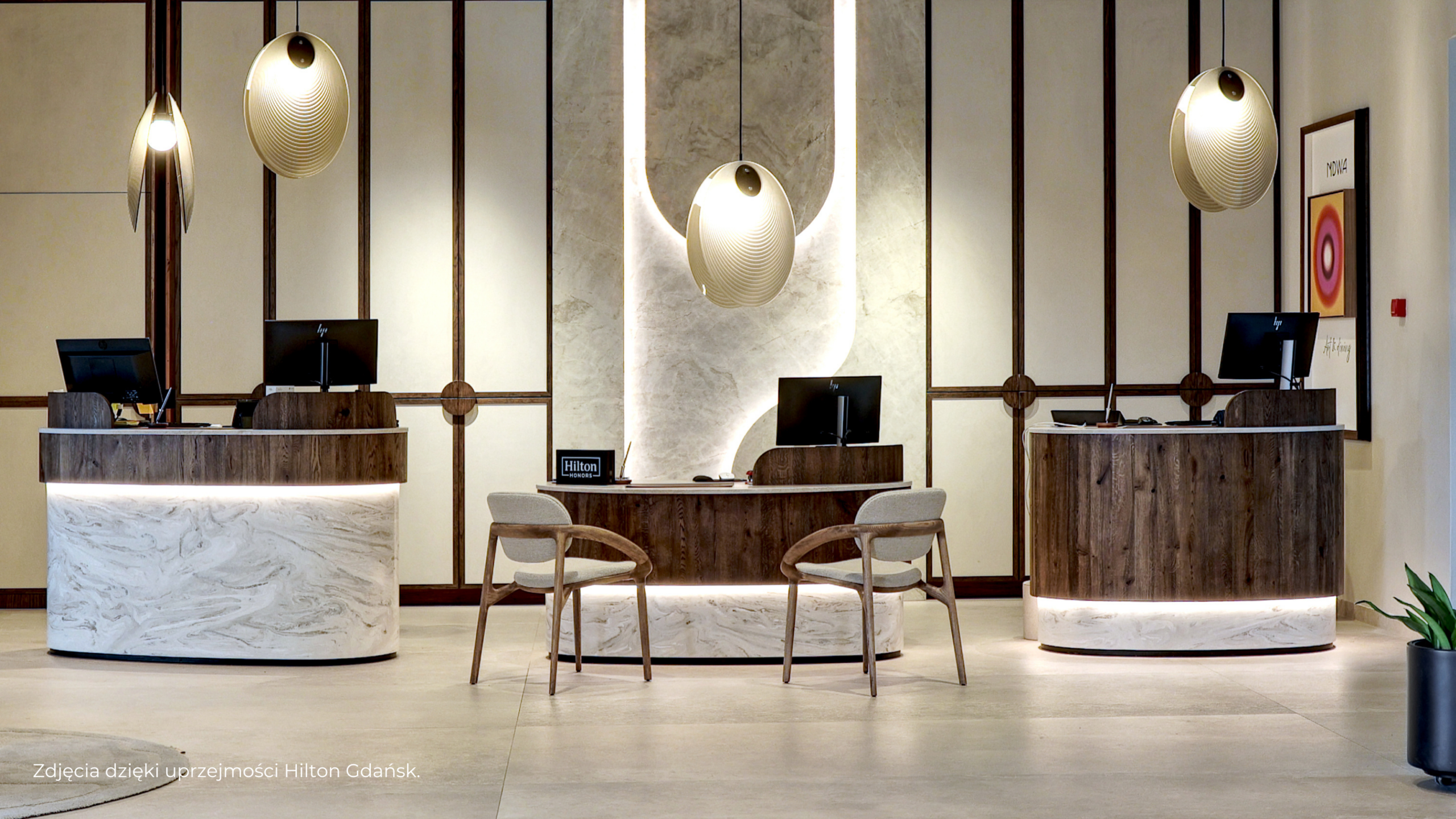 Strefa wejścia w hotelu buduje pierwsze wrażenie – zarówno wizualne jak i funkcjonalne. Przykładem współtworzenia przez CCI takiej hotelowej wizytówki jest realizacja kontuarów recepcyjnych w Hilton Gdańsk, gdzie materiałowy dialog detalu, estetyki i jakości wprowadza gościa w przestrzeń kompletnych doświadczeń.