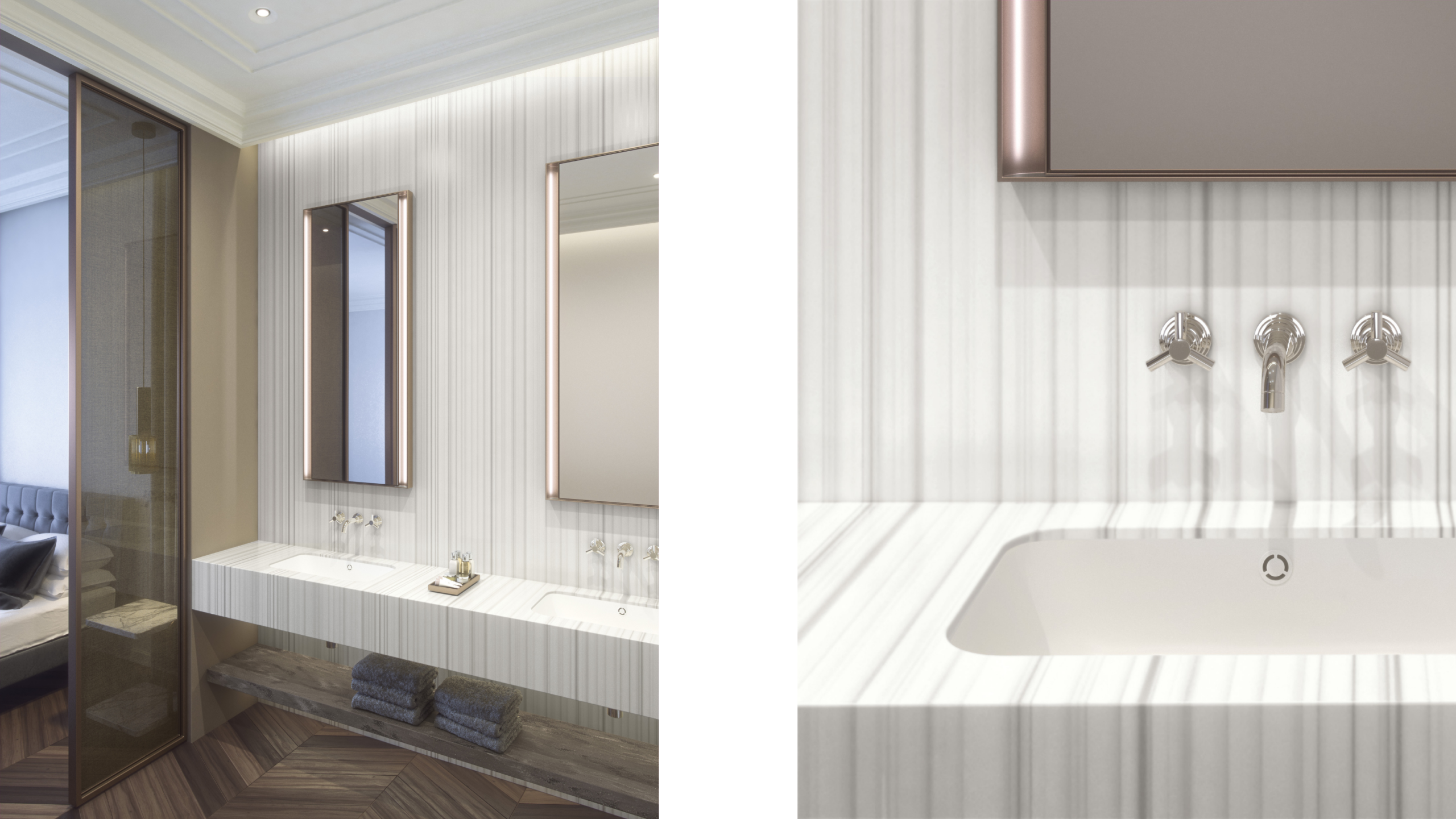 Jednym z największych wyzwań w hotelarstwie jest skalowalność. Corian® umożliwia standaryzację elementów takich jak blaty łazienkowe, umywalki czy zabudowy meblowe, bez utraty estetyki i precyzji wykonania. Jednymi z najbardziej eksploatowanych przestrzeni w całym obiekcie są łazienki hotelowe. To tutaj materiały są intensywnie testowane pod kątem wilgoci, chemii czyszczącej i codziennego użytkowania. Corian®, dzięki swojej nieporowatej i jednorodnej strukturze, pozwala eliminować newralgiczne punkty, takie jak fugi czy łączenia materiałowe. Zintegrowane umywalki, blaty czy panele ścienne tworzą środowisko łatwe w utrzymaniu i odporne na degradację wizualną. Dla operatora oznacza to krótszy czas sprzątania, mniejsze ryzyko uszkodzeń i stabilny standard przez długi okres użytkowania.